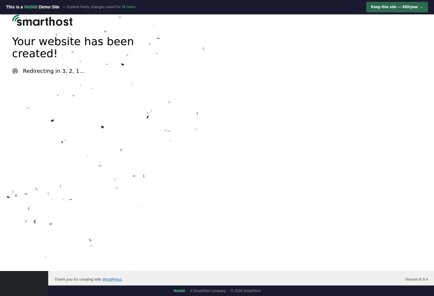 The process runs on the server, so it usually completes even if you close the tab. When you log back in, your site should be ready. If not, use Start Over to try again.