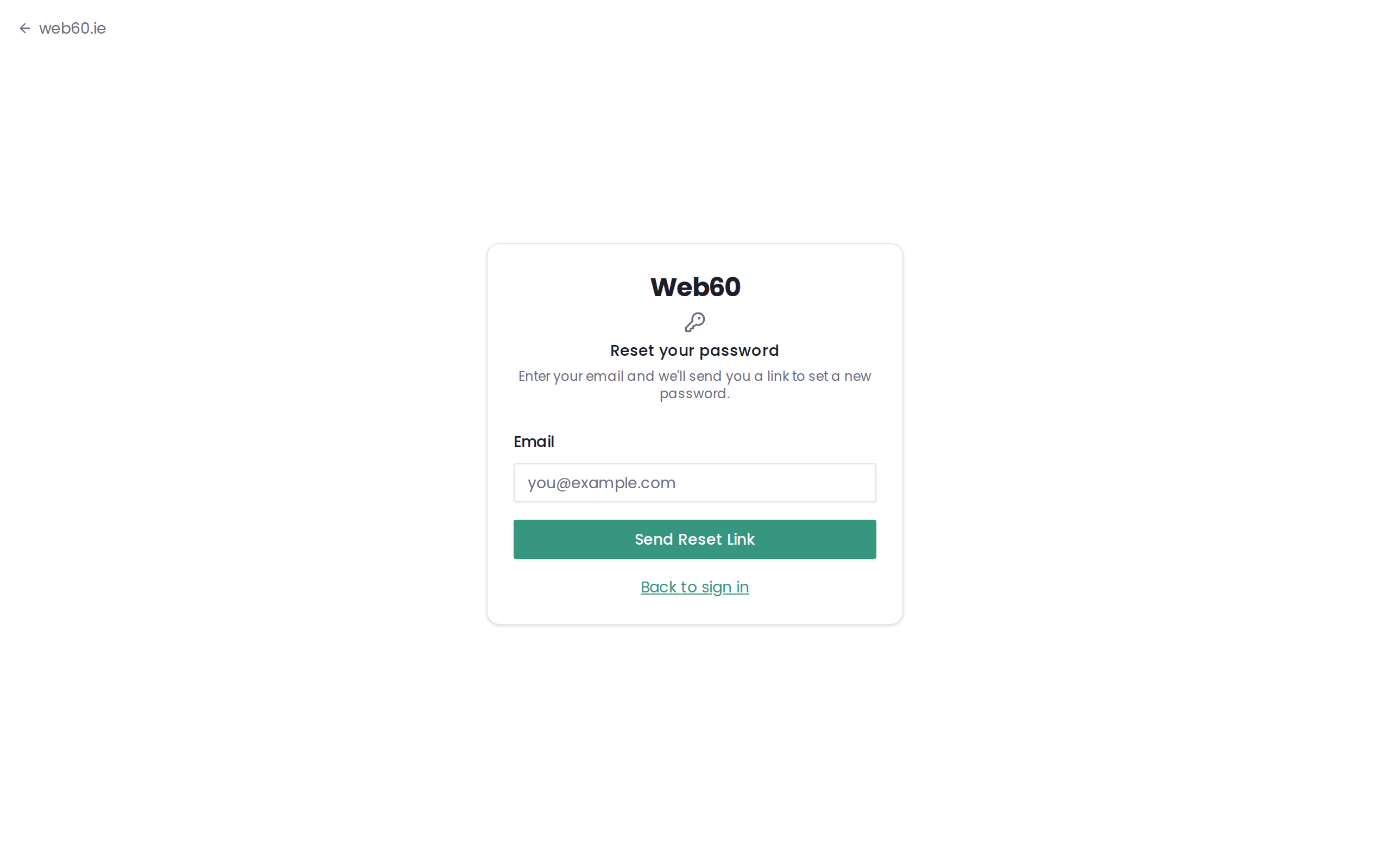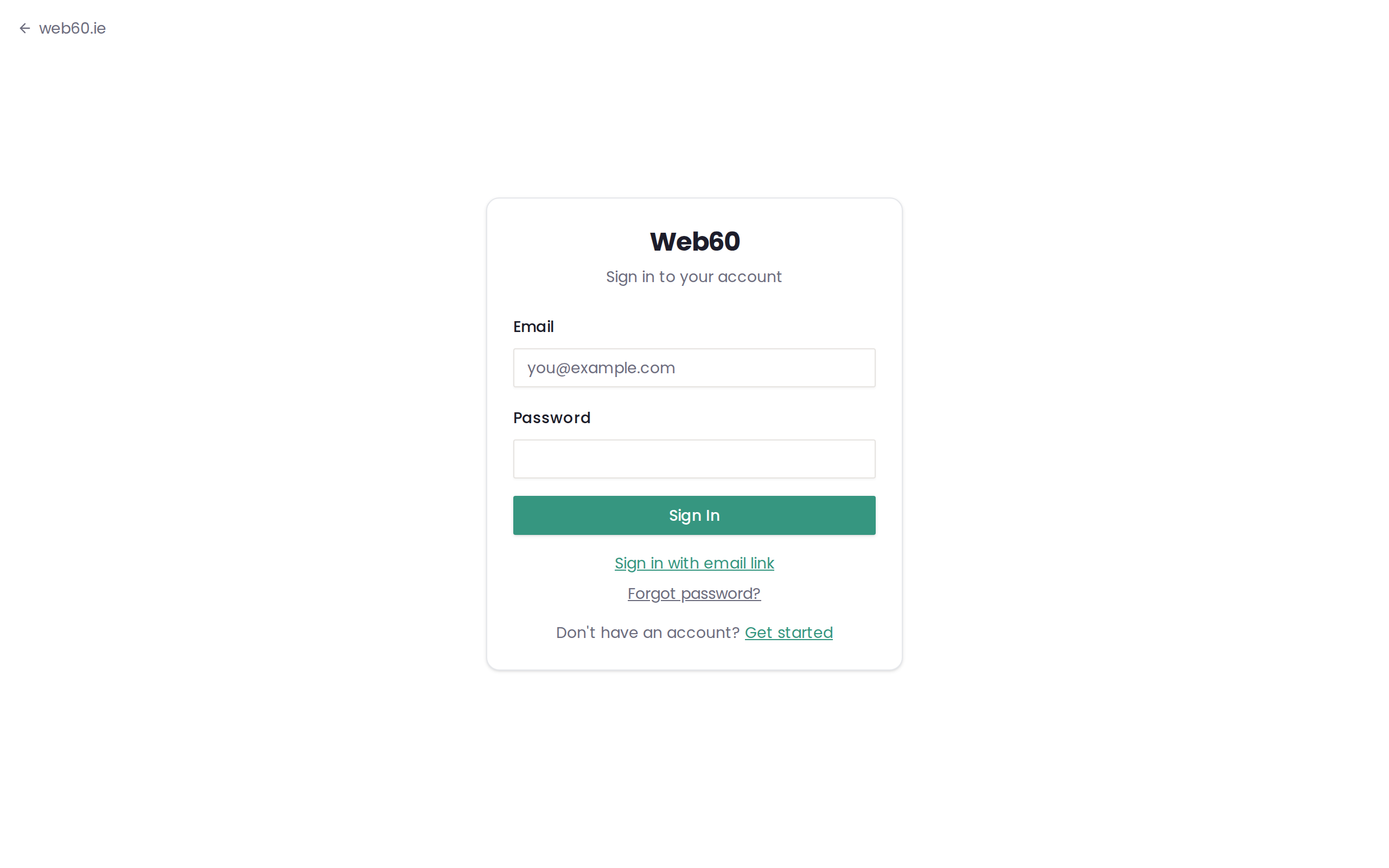 - Go to the sign-in page at app.web60.ie/login.