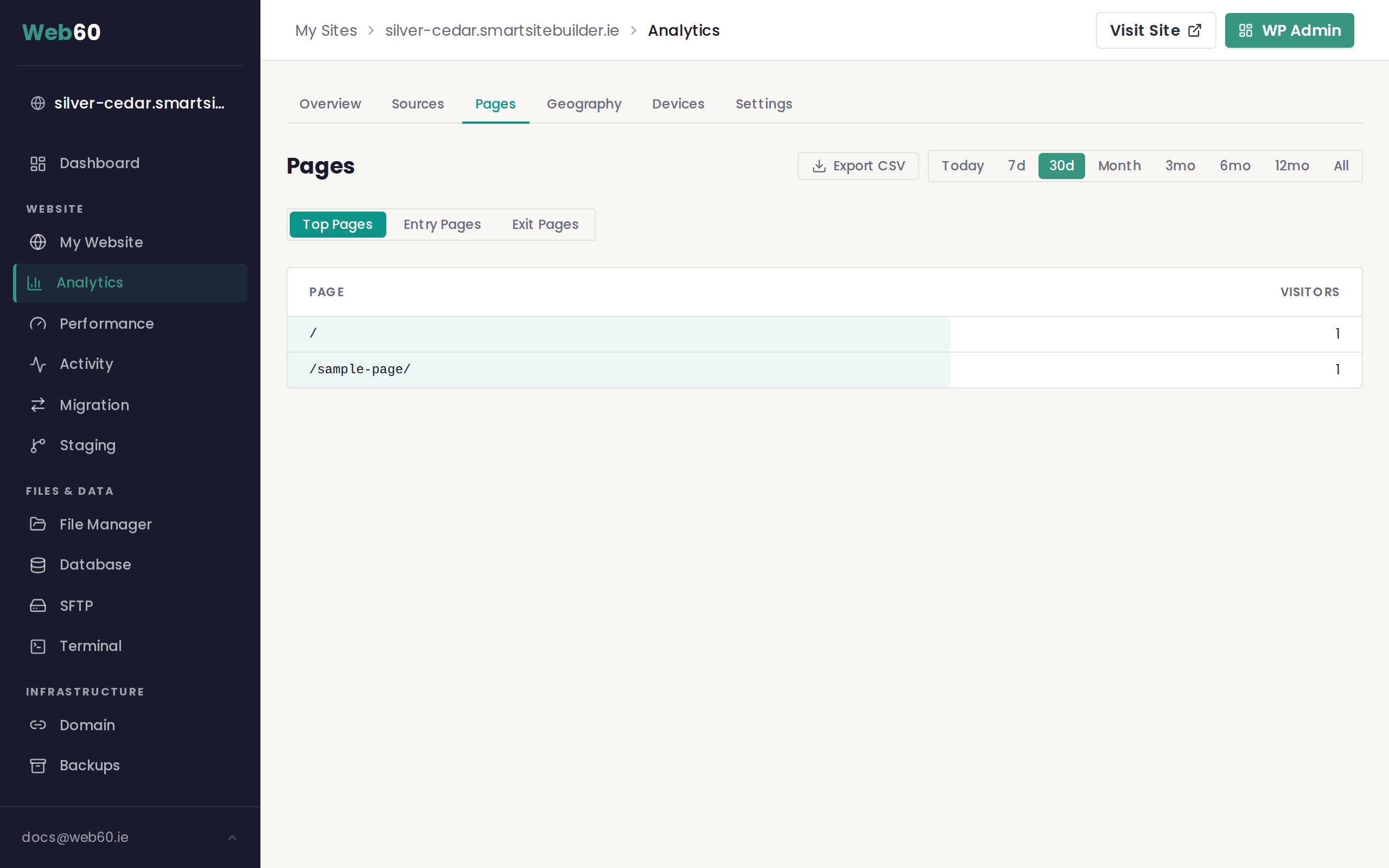 The Pages report in your Web60 dashboard shows exactly which pages on your website are receiving the most attention. This helps you understand what content your visitors find most useful and where they spend their time.