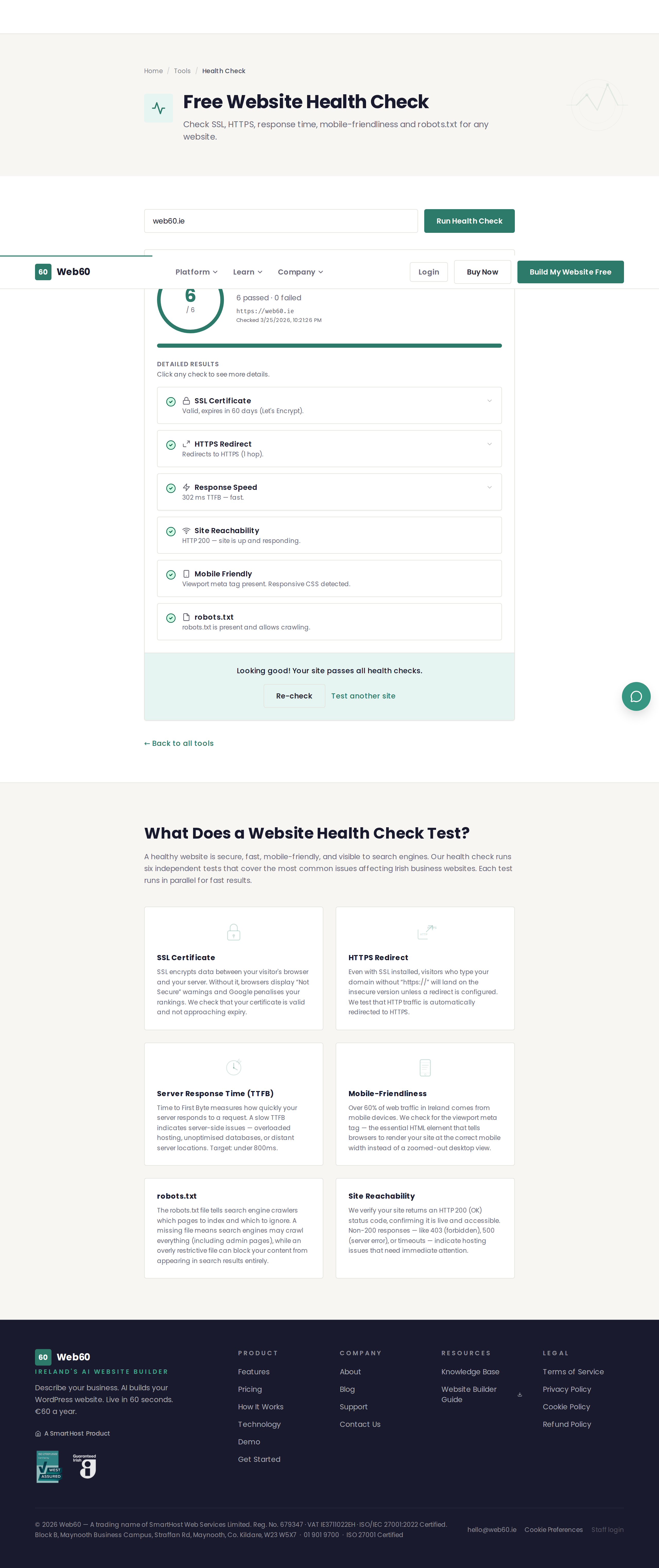 The Website Health Check runs five quick tests on any website and tells you whether the basics are in good shape.